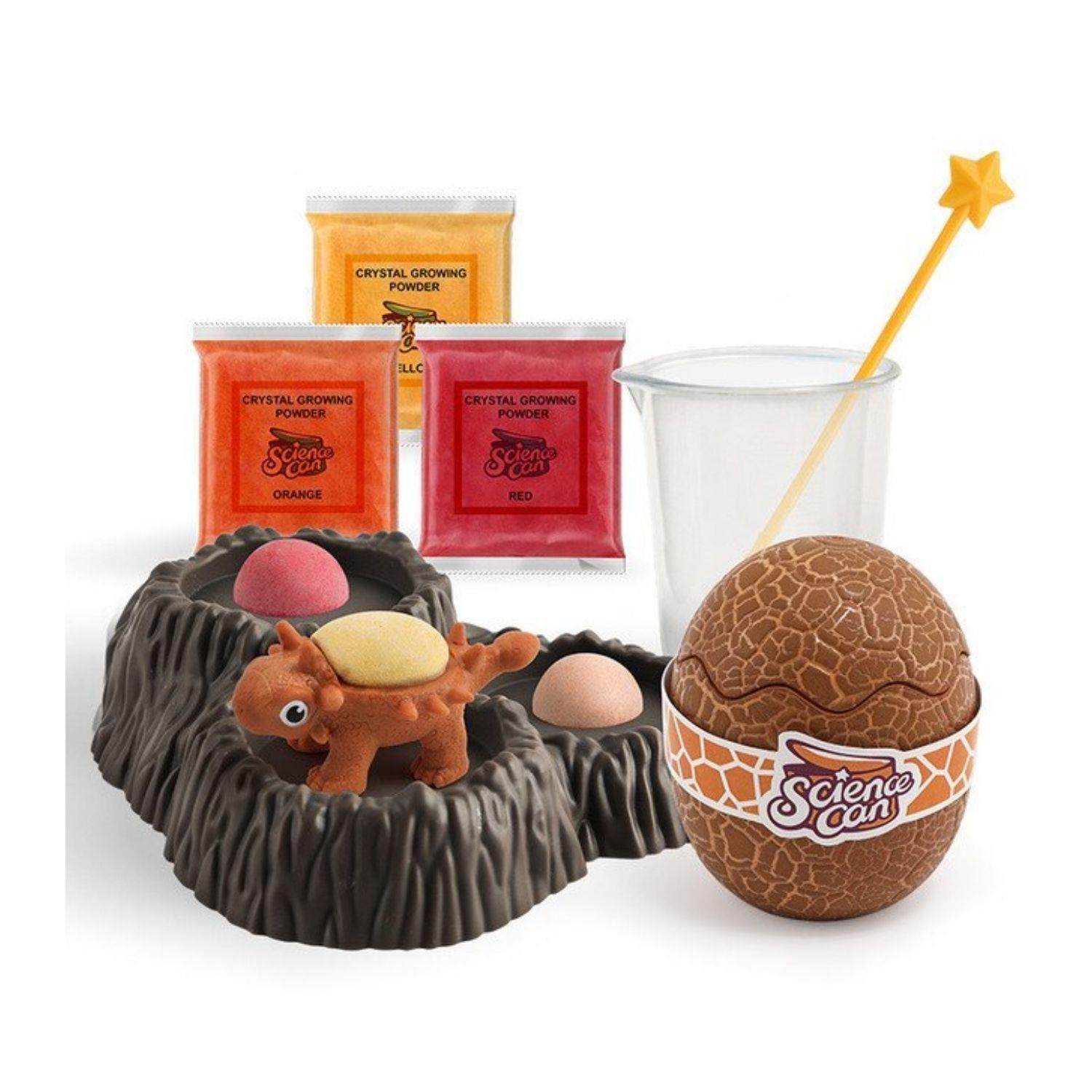 Learn chemistry with this hands-on crystal growing experiment kit on the back of the dinosaurs. Follow the simple steps to grow crystals in your choice of colors. Design and make your own stunning dinosaur crystal garden. It’s the perfect gift for any budding Scientist.