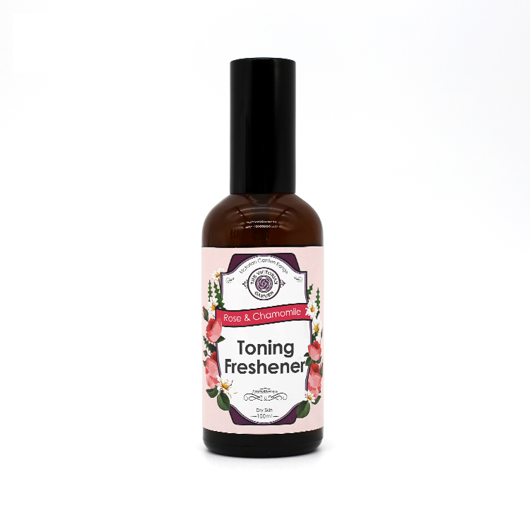 Freshen and hydrate the skin with this favourite Victorian Spritzer lotion. Our toners are all alcohol free and designed to awaken, revitalise and cool the skin. Sprayed onto the skin’s surface and allowed to dry, they act as a pre-moisturizer and balance the skin’s pH. Rose and Chamomile, high in vitamins and nutrients, provides a fresh nutritional tonic for a dry skin.